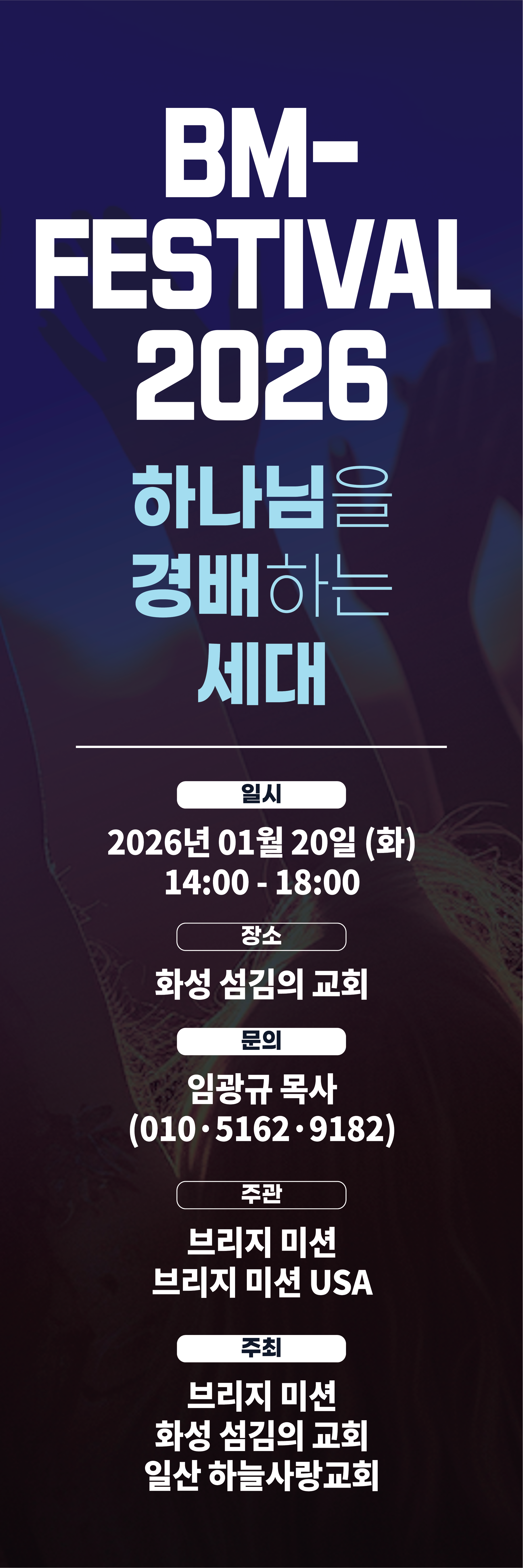 청소년 찬양 경연 대회 및 찬양 집회 : 매년 1월 셋째주 목요일 / 화성 섬김의 교회